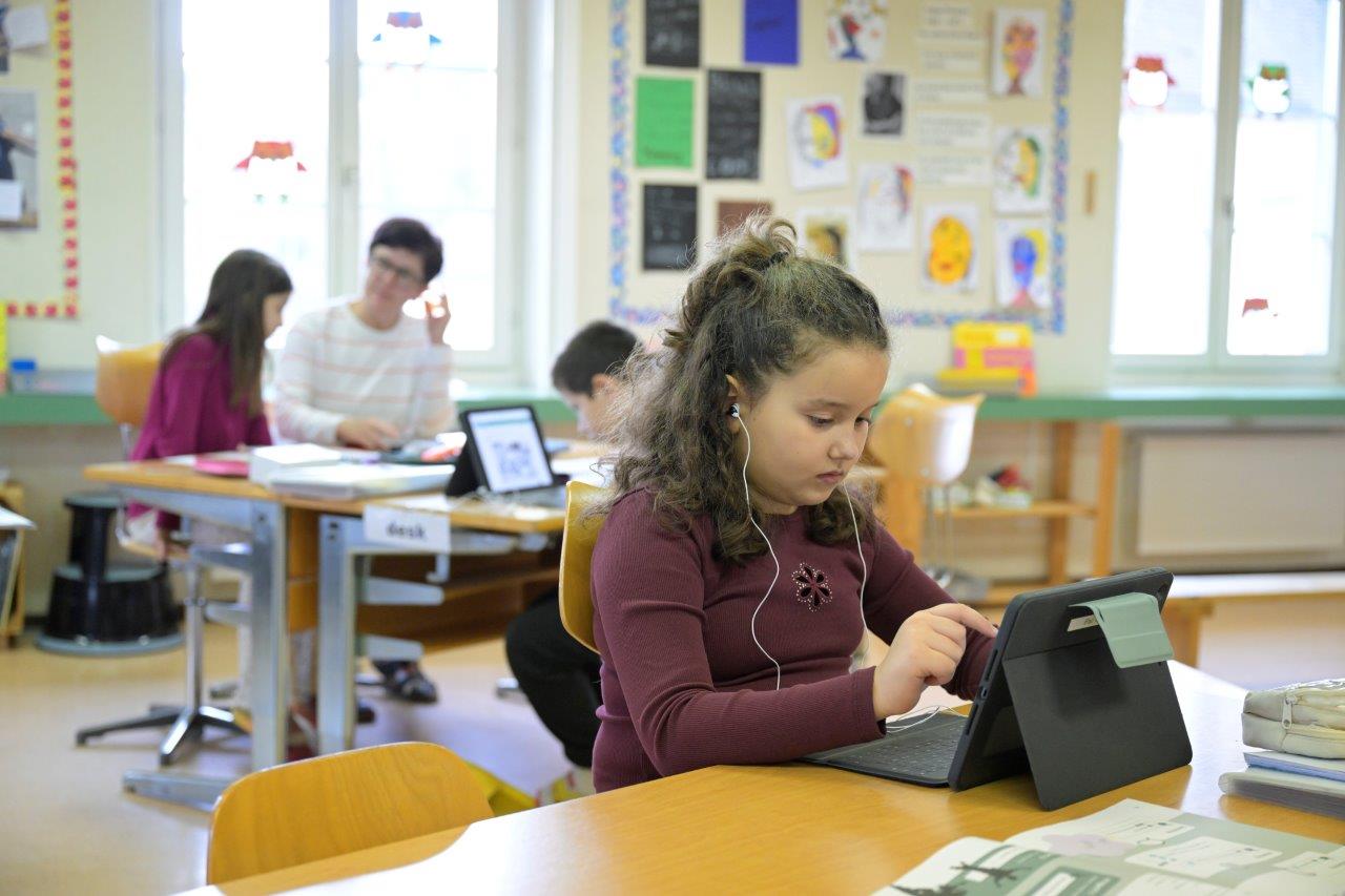 «Join In 3» ist ein hybrides Lehrmittel und verbindet gedruckte und digitale Materialien. Das gedruckte Student’s Book enthält jene Activities, die Schreiben oder Zeichnen erfordern. Das Schreiben von Hand unterstützt den Lernprozess, was auf dieser Stufe besonders wichtig ist. Im digitalen Student’s Book arbeiten die Kinder mit Audios, Videos und interaktiven Formaten. Zusätzliche Übungsmaterialien stehen in digitaler Form als «Practice» mit Übungen zu den Lernzielen der Units und als «Vocab Trainer» bereit. Eine 1:1-Ausstattung mit Tablets ist keine Voraussetzung. Es kann gut mit einer 1:2-Ausstattung gearbeitet werden.